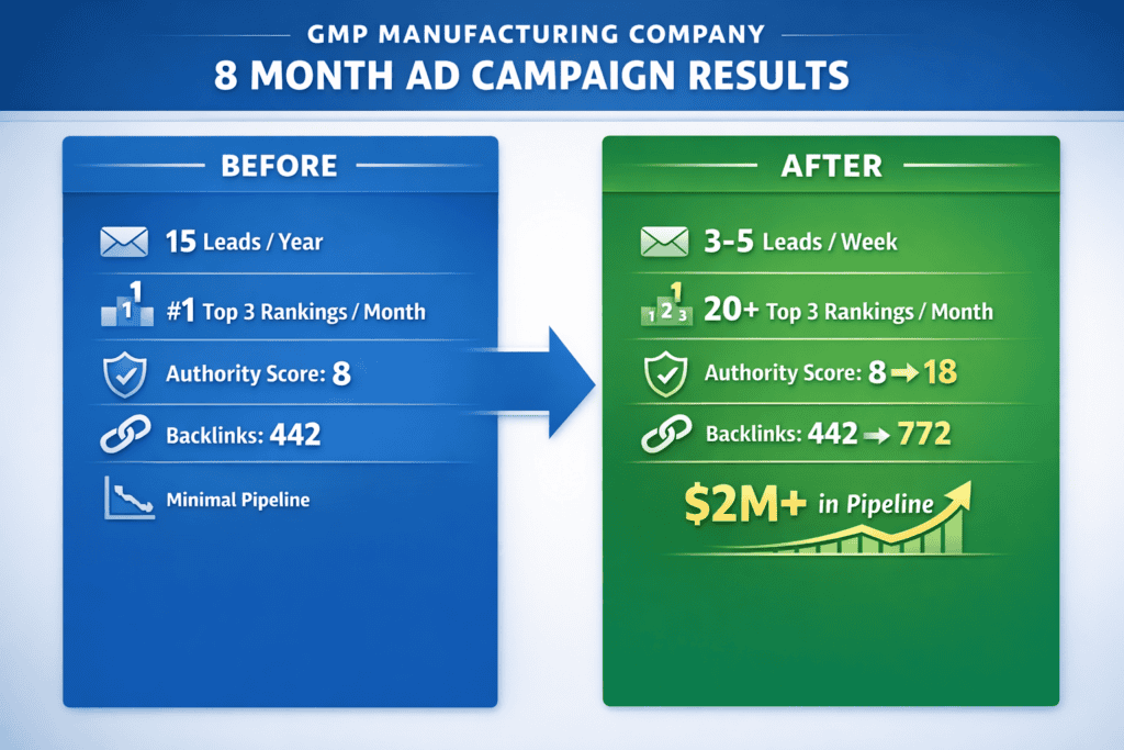 A GMP manufacturing consulting firm was struggling with limited online visibility and inconsistent inbound opportunities. Despite offering high-value services, their digital presence was not generating meaningful demand.